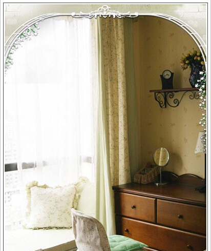 客卧是给父母来住的,所以不再粉嫩,来些稻香色,多几分温情:椅子是宜家一个塑料滑轮椅,在上面做个和窗帘一样的罩子,马上身价倍增。